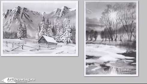 Что нужно для того чтобы нарисовать подтаявший лед на реке. Зима, тоже имеет разные текстуры, которые могут быть изображены обычными графитными карандашами. Я уверен Вы сможете нарисовать такие пейзажи вместе со мной.