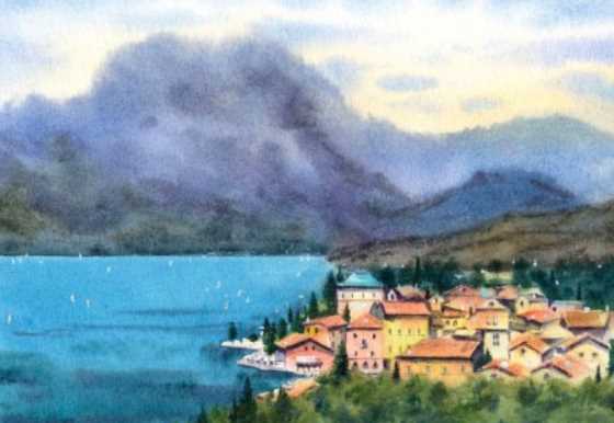 В этом уроке вы с Андреем напишете вид на городок Рива-дель-Гарда. Научитесь мягко писать небо, горы и панораму города, при этом, не пересчитывая все крыши и окошки.