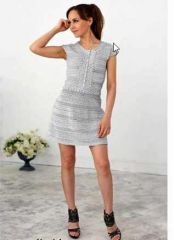 На фотографиях вы видите платье «Argentum» 42 размера длиной 85 см, связанное из пряжи люрекс в 25гр 200м крючком № 2,00.