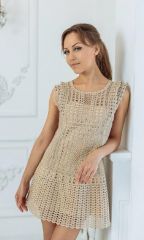 На фотографиях вы видите платье «Спарта» 44 размера длиной 84 см, связанное из пряжи 100% хлопок в 50гр 300м крючком № 1,25.