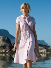 Скругленный отложной воротничок, короткие рукава, эластичная кулиска на талии и летящая юбка от бедра — с таким симпатичным платьем рубашечного покроя вы не расстанетесь этим летом! Дань спортивному стилю — карманы на пуговицах в поперечных швах.