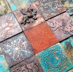 Среди них встречаются керамические плитки с молдами, плитки 'Кафдекоръ' от @oralines, плиточки из фанеры и пустые заготовки для техники тиснение.