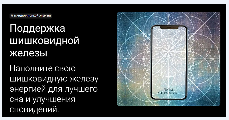 'Все заявленные эффекты проявились с первого использования. Вечером открыл пару мандал на телефоне и планшете. Ночью увидел потрясающе яркое «кино» с множеством спецэффектов. Сны я вижу довольно редко, поэтому про сегодняшний могу сказать, что это было нечто совершенно исключительное. Продукт способствует очень глубокому погружению в ткань сна, обеспечивает возможность пережить очень яркие ощущения от происходящего'