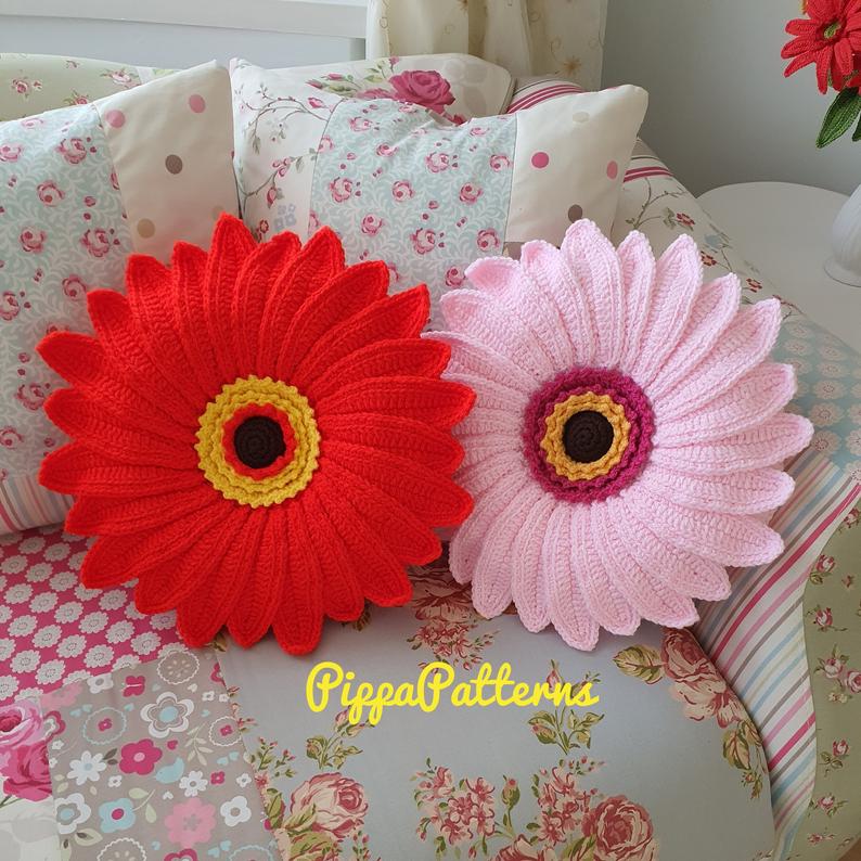Это узор крючком для дивана / кровати / подушки / подушки в форме цветка герберы и ромашки.