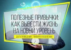 Именно об этом я и буду говорить на свое будущем мероприятии посвященном тематике: 'Полезные привычки: Как вывести жизнь на новый уровень?'
