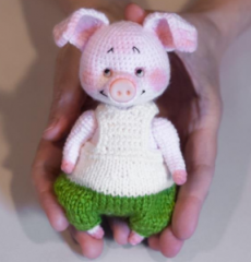 Поросёнок Хрюня с шплинтовыми соединениями в стиле мишек тедди (нужен опыт при работе со шплинтами и дисками.) Мк содержит в себе 38 страниц с подробным описанием вязания и 140 фотографий сборки и оформления игрушки. В описание входит вязание штанишек. Описание вязания шапочки не входит в МК.