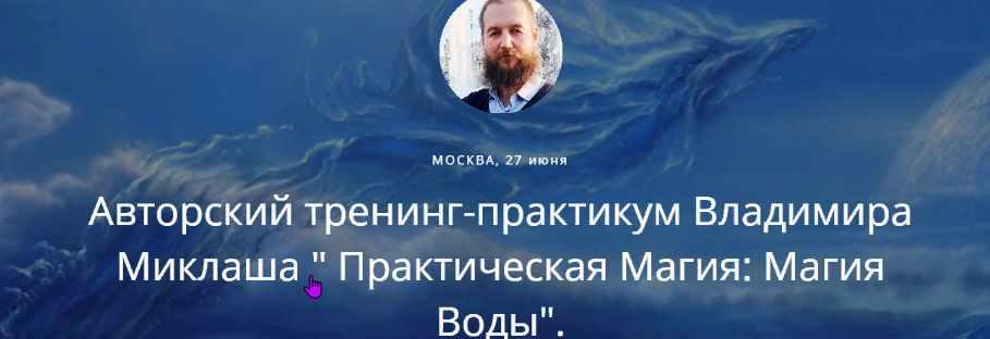 Новый авторский тренинг-практикум Владимира Миклаша по изучению и практическому освоению технологий Магии Воды.