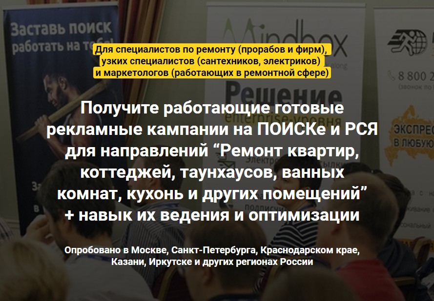 Получите работающие готовые рекламные кампании на ПОИСКе и РСЯ для направлений “Ремонт квартир, коттеджей, таунхаусов, ванных комнат, кухонь и других помещений”