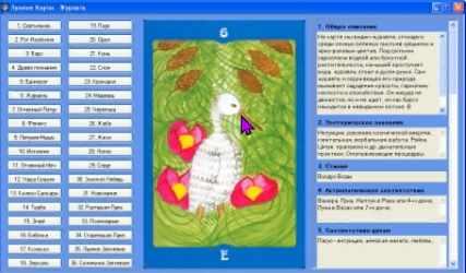 Включает в себя крупные изображения 36 лунных карт (Вы можете использовать их для изготовления колоды ЛК путем распечатки на цветном принтере) и подробную информацию по значению каждой карты.