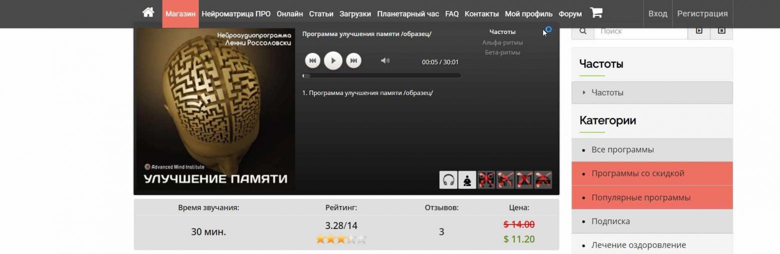 В связи с тем, что в программе использованы бета-ритмы ее рекомендуется слушать в утренние и дневные часы, НО НЕ вечером! В противном случае можете столкнуться с бессонницей. Данную программу можно прослушивать как через наушники так и через аудиосистему. При прослушивании через наушники ее эффективность будет выше. Рекомендуемая длительность работы с данной программой: 6-8 недель. Уже через 1-2 недели работы с этой программой произойдет заметное улучшение вашей памяти, оценить которое вы сможете при помощи теста.