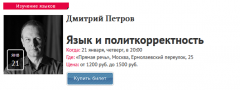 Если вы не хотите краснеть перед коллегами в деловых поездках и вам важно разобраться, какие слова употреблять уместно, а какие лучше придержать, приходите на новую лекцию полиглота Дмитрия Петрова. Она посвящена политкорректности в речи. Дмитрий Петров поделится информацией о самых последних изменениях, расскажет, как они влияют на бренды, коммерческую рекламу и политические кампании. И поговорит о том, как магия слова работает в современном мире.