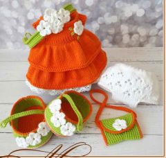 Спицы 3,0 мм, платочная вязка двухцветным полосатым рисунком, 22 п. х 44 р. = 10x10 см; спицы 2,5 мм, платочная вязка для планок, манжет и бейки, 23,5 п. = 10 см.