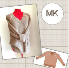 В МК «GIULIA» представлен классической пуловер с цельновязанной горловиной мысом, выполненный полностью жемчужной резинкой с акцентными планками по линии реглан. Я уже немало связала подобных джемперов их кашемира, полухлопка. Теперь из шелка на мохере… Кстати, следующий такой-же будет снова из кашемира. Ну ведь отличная носибельная модель, поэтому он является одним из фаворитов повседневной моды.