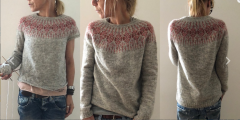 Пуловер вяжется спицами без швов сверху вниз. Сначала вяжем укороченными рядами для ростка спинки, а затем кокетка вяжется круговыми рядами до отделения рукавов. Ещё несколько укороченных рядов вяжутся прямо перед тем, как петли рукава будут отложены, чтобы закончить формирование кокетки. Затем тело вяжется круговыми рядами вплоть до подола. Рукава вяжутся сверху вниз до конца манжет. Отделка не требуется.