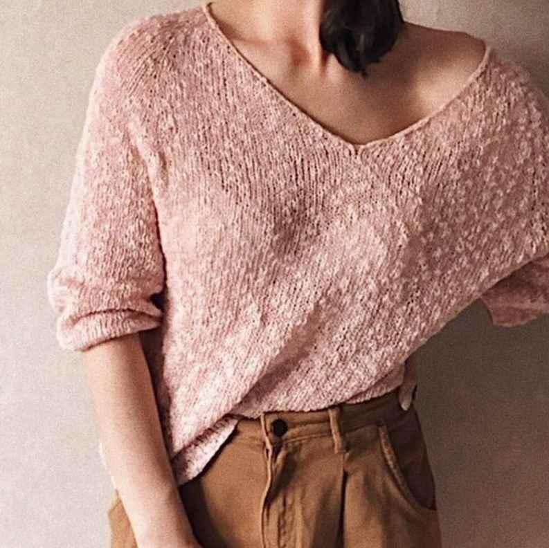 - пуловер вяжется по кругу в технике реглан сверху.