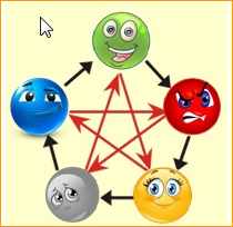 Например, элемент Земли будучи в избытке делает человека пассивным, замкнутым, жадным и ревнивым. А при недостатке этого элемента, человек становится безответственным, равнодушным и легкомысленным.