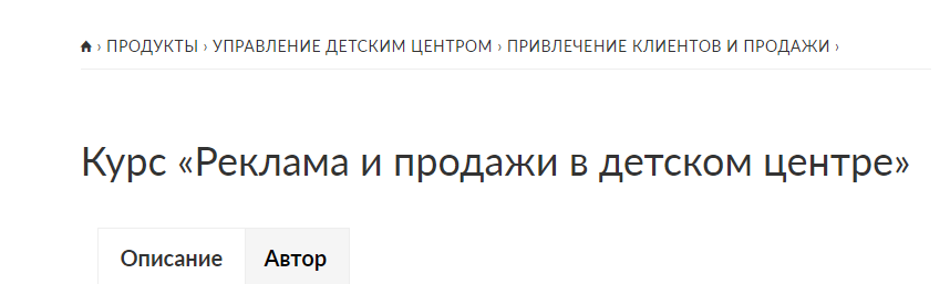 Отличительные особенности курса «Реклама и продажи в детском центре»
