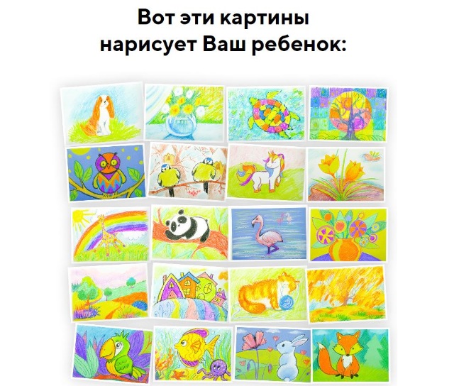 За время онлайн-курса Ваш ребенок нарисует 20 картин.