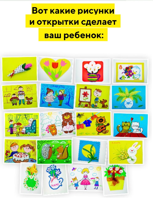 Ваш ребёнок изучит 4 техники и несколько смешанных техник: гуашь, фломастеры, аппликации, поделки из бумаги.