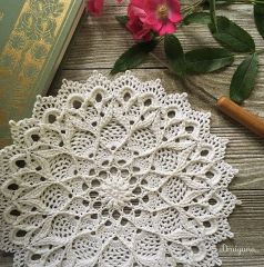 Эта салфетка имеет 22 витка и имеет размеры 8 дюймов в диаметре, если используется нить размера 10, или 10 дюймов в диаметре, если используется нить размера 5. Материалы перечислены ниже для обоих размеров. Шаблон написан с использованием терминологии США.