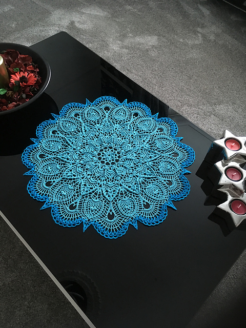 Этот шаблон представляет собой письменную инструкцию с фотографиями для справки о некоторых более сложных раундах. Pattern использует американскую терминологию, работает по циклам и состоит из 37 раундов.