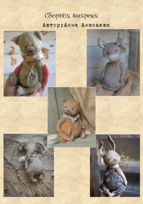 Сборник Выкроек 5 в 1 (мишка, ослик, кот, слон, заяц) (Анна Ананьева)