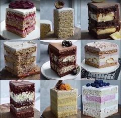 9 тортов с очень разным содержанием, кремами, покрытиями