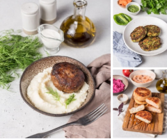Мясные котлеты с пюре из цветной капусты;