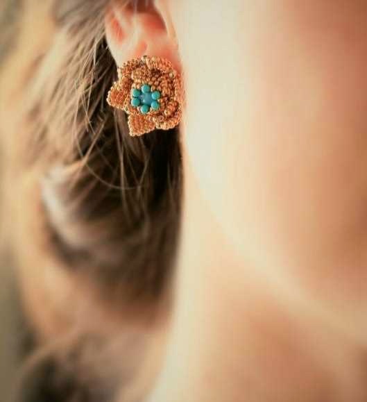 Серьги-гвоздики цветы / Beaded Flower Stud Earrings (Ezartesa)