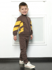 Джоггеры умеренного объема, по низу собраны на резинку, что позволяет носить их достаточно долго. Накладные карманы по боковым швам и карман-обманка сзади делают модель более интересной. Пояс притачной на резинке. По среднему шву предусмотрен ложный гульфик.
