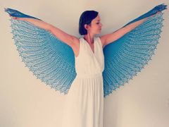 Размеры готовой шали: Размеры шали зависят от выбранных пряжи, спиц, плотности вязания и от блокировки.