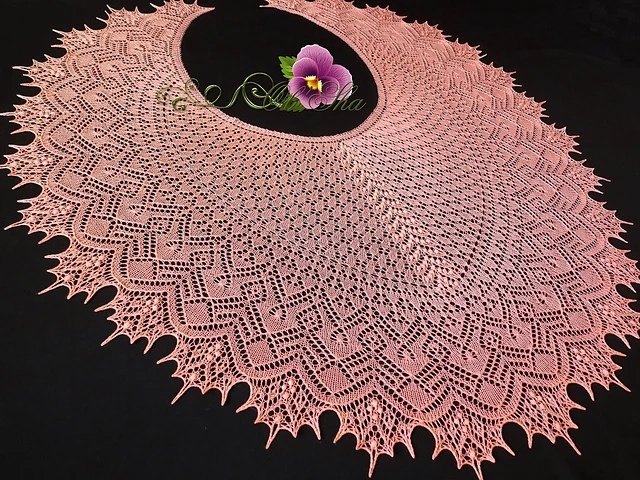 Размеры шали зависят от выбранной Вами пряжи, инструментария и индивидуальной манеры вязания.
