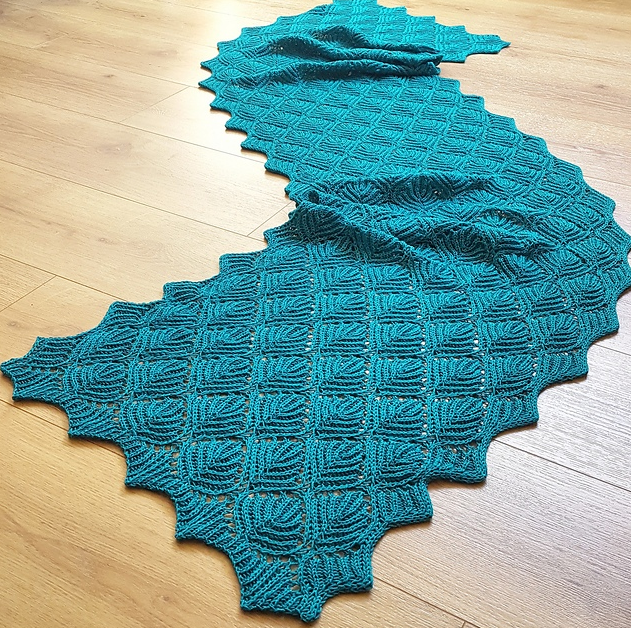 Этот шарф связан с использование комбинации техники бриошь и ажурного узора. В результате получился элегантный и плотный шарф с двусторонним ажурным узором.