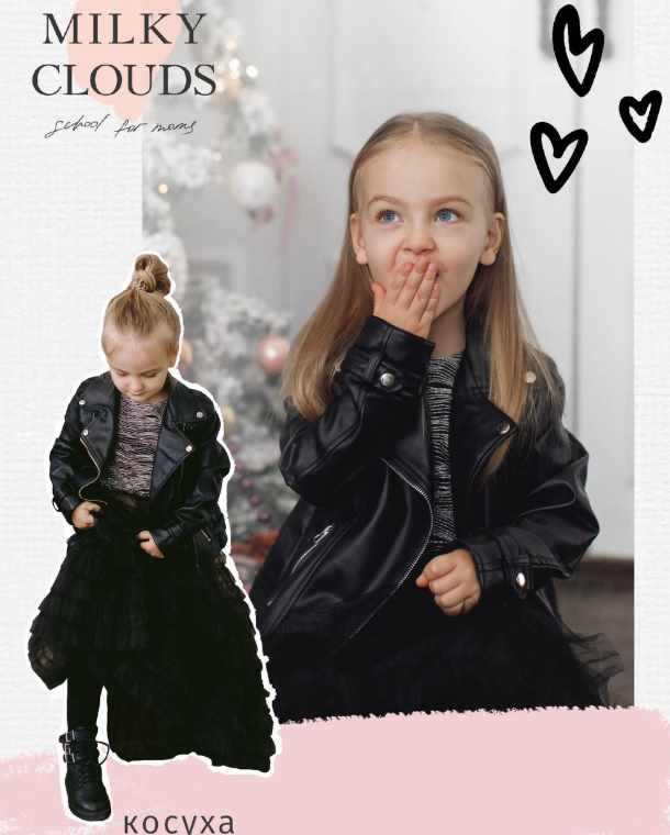 Детская косуха из экокожи (кожи) на подкладке. Силуэт прямой, с втачным рукавом.