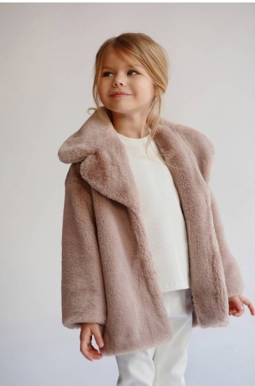 Детское меховое пальто из экомеха на подкладке с утеплителем.