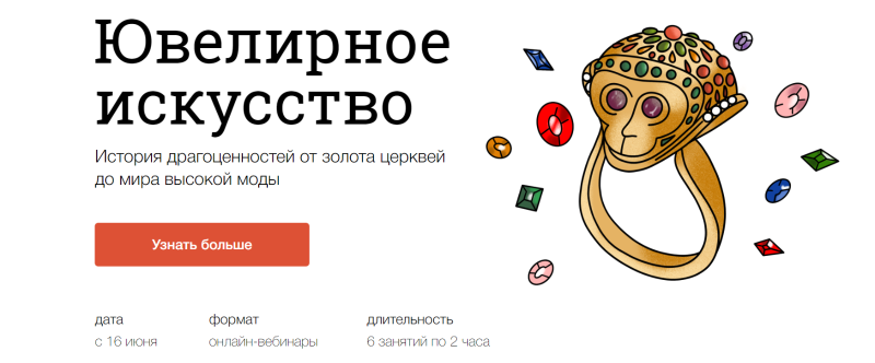 Ювелирные украшения стали символами, которые легко читать. Без кольца с бриллиантом не бывает помолвки, а дорогие наручные часы — признак высокого статуса. Но мы редко задумываемся, откуда взялись такие традиции. За 6 занятий проследим историю ювелирного дела и увидим за блеском драгоценных камней настоящее искусство.