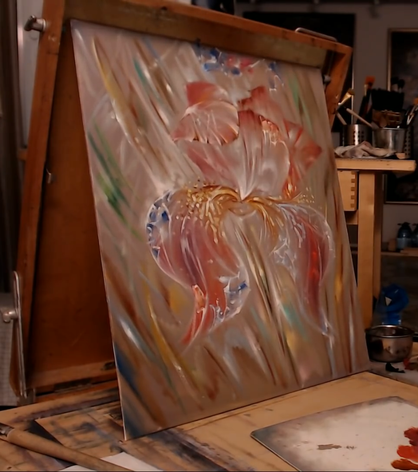 Авторская техника «Сияние» вновь оживёт на вашем полотне, окутывая своим волшебным светом нежный и невероятно прекрасный ирис.