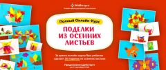 Курс для детей «Поделки из осенних листьев», шаг за шагом научит делать удивительные осенние поделки: Ёжика, Павлина, Бабочку, Петушка, Морскую картину, Птичку на веточке, Улитку, Корону, Цветок в горшочке, Принцессу, Сову, Кораблик, Корзинку из листьев, Рамку для картины, Портрет осенними листьями, Шаблоны осенних листочков и др.