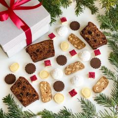 Рождественский влажный кекс, ассорти печенья, ассорти конфет фадж, рождественские орешки