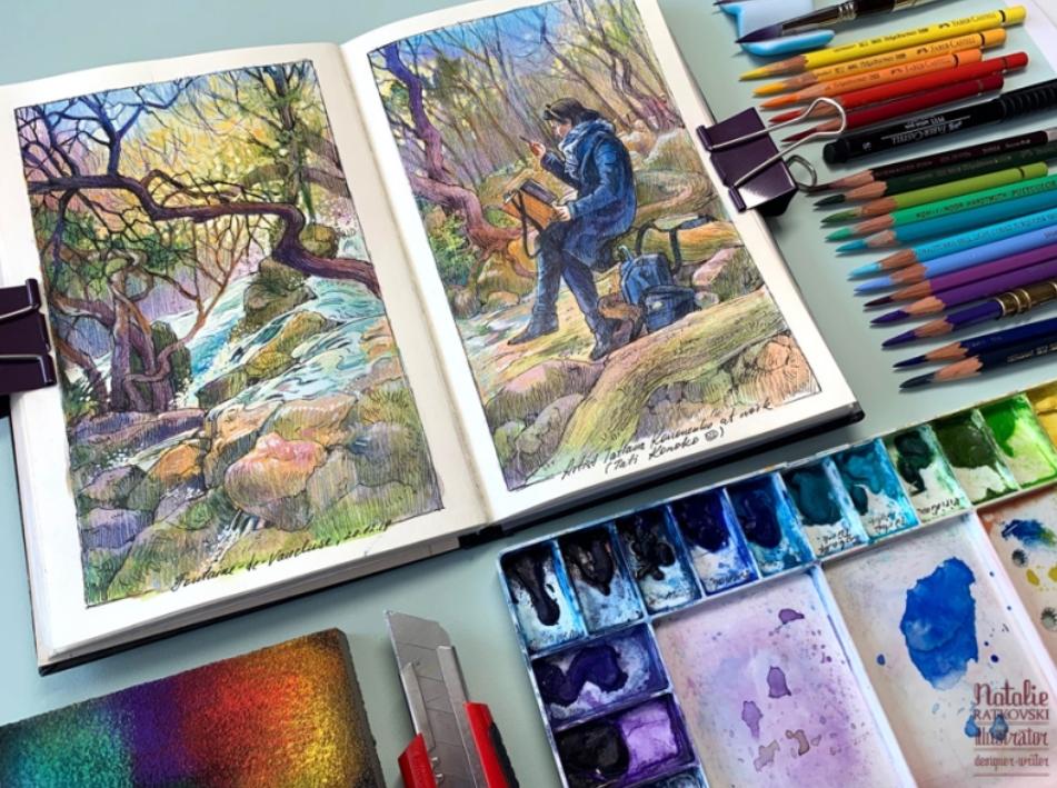 Какая техника поможет вам в условиях пленэра впитать в себя все эмоции, атмосферу и впечатления? Конечно смешанная техника скетча! Ведь она позволяет ухватывать быстро меняющийся свет, красоту сцены, а также делать ошибки и легко исправлять их!