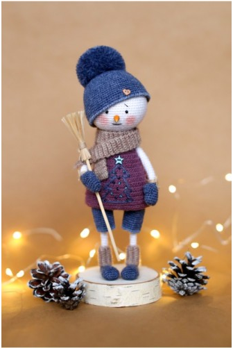 Снеговичок ростом 19 см (без шапки). Вяжется быстро и просто, все детали ? ввязываются в процессе вязания, ручки и ножки армированы, поэтому снеговик может принимать любые позы. Можно вышить желаемой формы ротик и бровки. Связан снежныи? друг и его одежда из real 40 Alize. Связать себе такого снеговичка можете и вы).