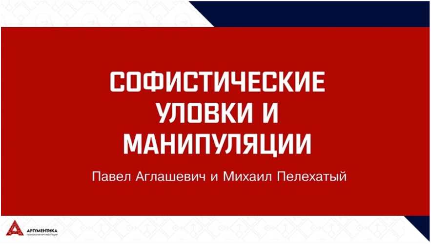 СОФИСТИЧЕСКИЕ УЛОВКИ И МАНИПУЛЯЦИИ - это особый раздел АРГУМЕНТИКИ призванный научить методам отслеживания и защиты от подобного роду ходов. Научить использовать паттерны уловок в своих целях, иметь «софистов мечь» на случай борьбы.