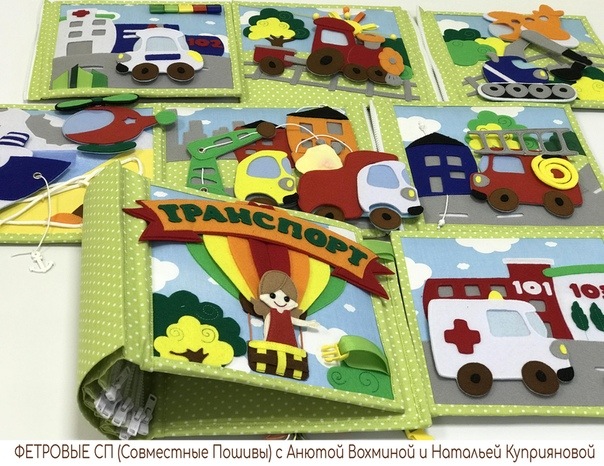 В данном СП мы вместе с Вами, шаг за шагом, сотворим этого пухляша, его размер 20х20 и толщиной почти 15см. Книга Транспорт включает в себя 16 игровых сюжетов-страниц, на каждой из которых представлен определенный вид транспорта, используемый в той или иной профессии. По нашим страничкам путешествуют друзья Митя и Поля, которые примеряют на себя спецформу представленных профессий. Книга сюжетно-ролевая и тем временем познавательная. Корешок на молнии, ребенок может сам составлять порядок сюжетов книги или же играть планшетами. Смотрите видео обзор во вложении