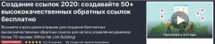 Обратные ссылки являются вторым по важности фактором рейтинга Google для ранжирования веб-сайтов в Google, но многие люди не знают, как создавать высококачественные обратные ссылки. Люди покупают тысячи некачественных ссылок по низким ценам, и в результате их сайт наказывается Google. Google наказание означает, что ваш сайт удален из результатов поиска Google. Поэтому очень важно быть внимательным к качеству обратных ссылок. Этот курс посвящен созданию первых 50 высококачественных обратных ссылок с авторитетных веб-сайтов. Эти ссылки - лучшее начало для нового сайта. Все способы создания ссылок - белая шляпа, и они на 100% безопасны согласно рекомендациям Google по качеству.
