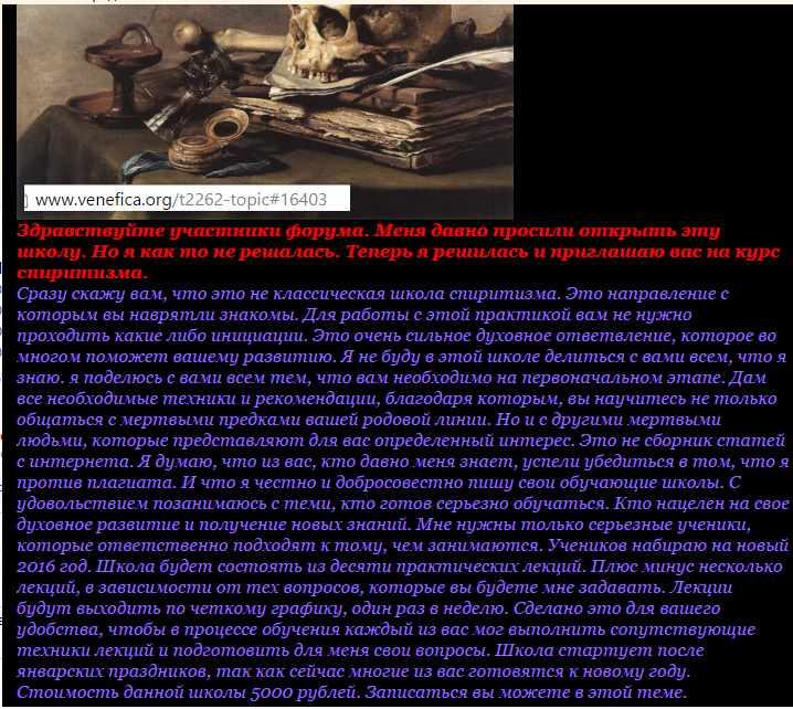 Спиритизм - верование в возможность необычайных проявлений духов в мире физическом. Начало его относится к глубокой древности. В Библии есть упоминание об аэндорской волшебнице, занимавшейся прорицанием и вызыванием душ умерших людей. По рассказу Григория Двоеслова, медиоланский епископ VI в. Даций, проезжая через Коринф, изгнал из одного дома злого духа, который не давал жить в этом доме, заставляя раздаваться по ночам рычанье львов, мычанье коров, блеяние овец, шипение змей. В нынешнем столетии это верование приняло своеобразную форму. В 1848 г. в штате Нью-Йорке семейство Фокс, состоящее из мужа, жены и двух дочерей, было поражено таинственными стуками в их доме. Одна из дочерей, по имени Кэт, высказала догадку, что звуки производятся каким-то разумным существом. Обратились к таинственному существу с вопросами (оно должно было отвечать постукиваниями). Было условлено, напр., что один удар будет обозначать «нет», три удара - «да». На вопросы попадались целесообразные ответы. Из них узнали, что говорит душа убитого разносчика. Дух продолжал отвечать и тогда, когда спрашивавшие его сестры Фокс оставили родительский дом и поселились у своей замужней сестры. Весть об этих необычайных явлениях быстро распространилась. Они были констатированы различными посторонними лицами. Сестры Фокс были признаны посредницами, или медиумами, через которых живые люди могут входить в общение с душами умерших. Вскоре открылись другие медиумы, через посредство которых стали совершаться другие обнаружения духов. Явились профессиональные медиумы, и вместе с ними сделались необычайные обнаружения духов более многочисленными и разнообразными. К этим обнаружениям относятся прежде всего автоматические движения, происходящие при видимом непосредственном участии медиума. Таковы приподнимание и вращение стола при наложении на него рук медиума; писание и рисование рукой медиума; автоматический разговор в состоянии транса. Вторую группу составляют явления, совершающиеся в присутствии медиума, но без его непосредственного участия и без всякой видимой причины. Сюда принадлежат: стуки, передвижение мебели, игра музыкальных инструментов, появление света, голосов, музыкальных звуков, различных материальных фигур, напр., человеческих рук, лиц или целых фигур, написанных слов и чертежей, фотографий человеческих и других форм, развязывание узлов.