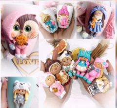 Единорожка, мишка тедди, тильда в платье ( 2 вида), тильда в пижаме, тильда в вязаной шапочке, тильда на ложке, совушка на кружке ( 3 вида), совушка на ложке, капкейк на кружке, 2 вида капкейков на ложке, кружка с вкусняшками, бургер, баночка с декором, ложка с макарунами, куколки мальчик и девочка, зайка ми, смурфетта, брошь мороженое и губки, приклеивание декора, новогодний гномик, снеговик, новогодний совёнок.