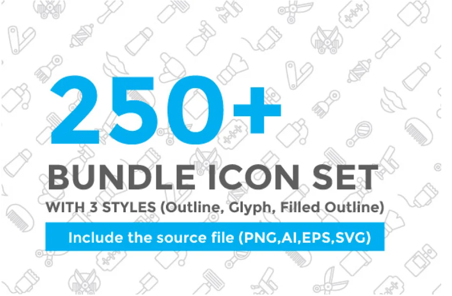 250+ Набор иконок Bundle с 2 стилями (контур, глиф и заполненный контур). Включите исходный файл (формат PNG, AI, EPS и SVG).
