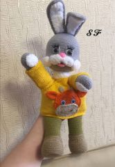 Мастер класс в PDF формате на 22 стр. содержит 51 фотографий и подробное описание процесса вязания крючком Степашки, а так же вязание спицами свитер. Рост без ушек 30 см. с ушками 37 см.