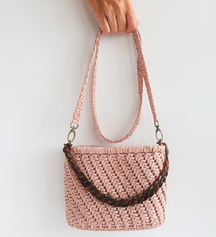 1 ролл рафии (250м/120г), крючок 3,5 мм, замок-молния 25 см и фурнитура для ремешка, ткань для подклада и замок-молния для кармана.