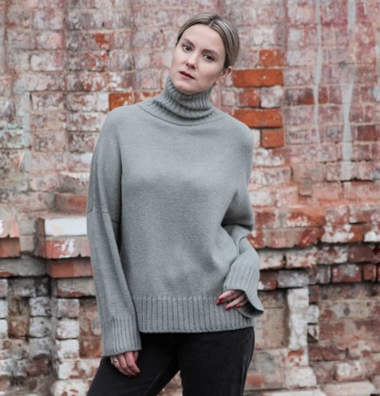 Свитер с посадкой оверсайз, связан сверху вниз бесшовным методом, начиная от набора горловины.